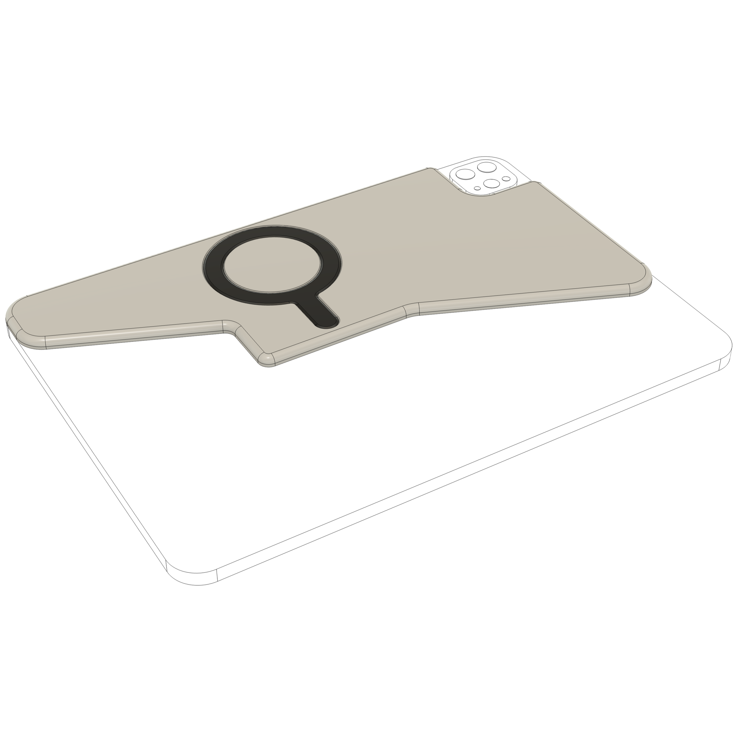 3D printed adapter plate with MagSafe compatible sticker, the plate magnetically snaps to the back of your (naked) iPad, this enables you to magnetically attach the WLAN Pi Go to the back of your iPad.